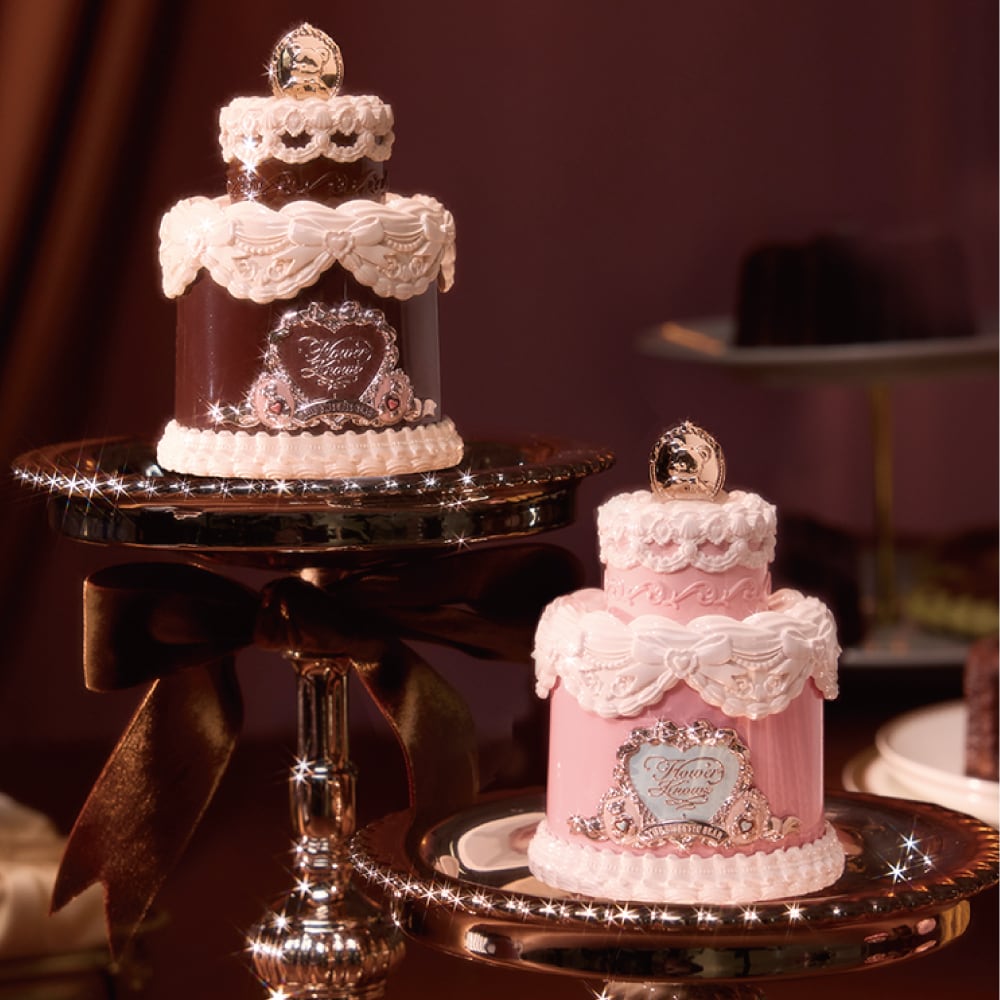 ケーキ屋さんのショーウィンドウに飾られた豪華なデコレーションケーキ